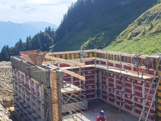 Für die Alpkorporation Unterkamor durften wir in den letzten Wochen ein neues Wasserreservoir erstellen. Dieses dient als Ergänzung zum bereits bestehenden Speicher und soll die Wasserversorgung während der Alpzeit gewährleisten. Das neue Bauwerk fasst zusätzliche 275'000 Liter.